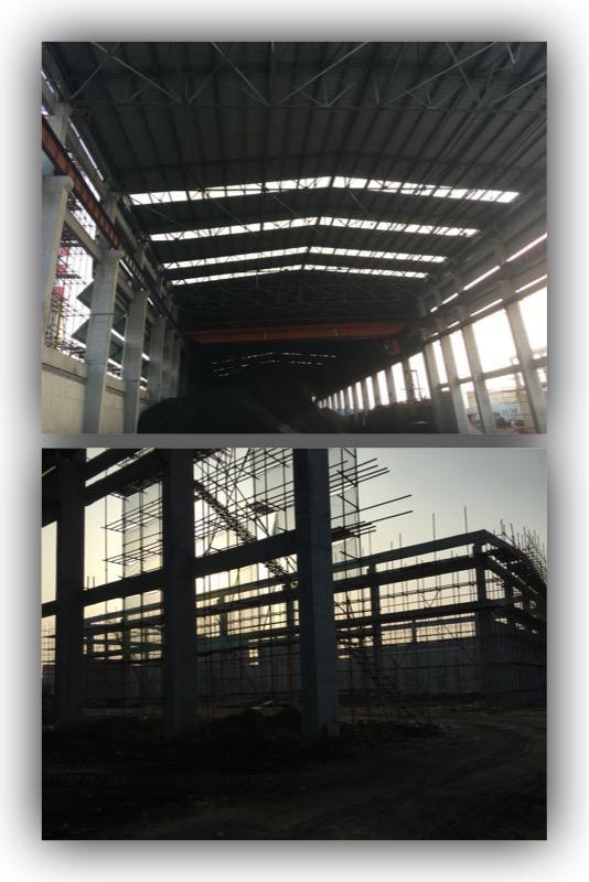 ?、嘈陆号锘炷嗤两Y(jié)構(gòu)(含擋煤墻)結(jié)頂施工完成,行車梁、屋面、屋架施工完成,墻板及雨棚年后施工。